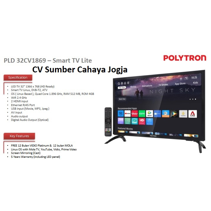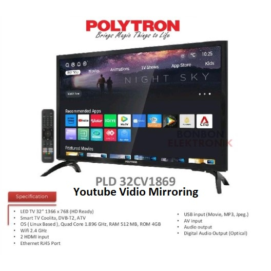 POLYTRON LED SMART TV 32" YOUTUBE MIRRORING VIDIO PLD 32CV1869 DIGITAL