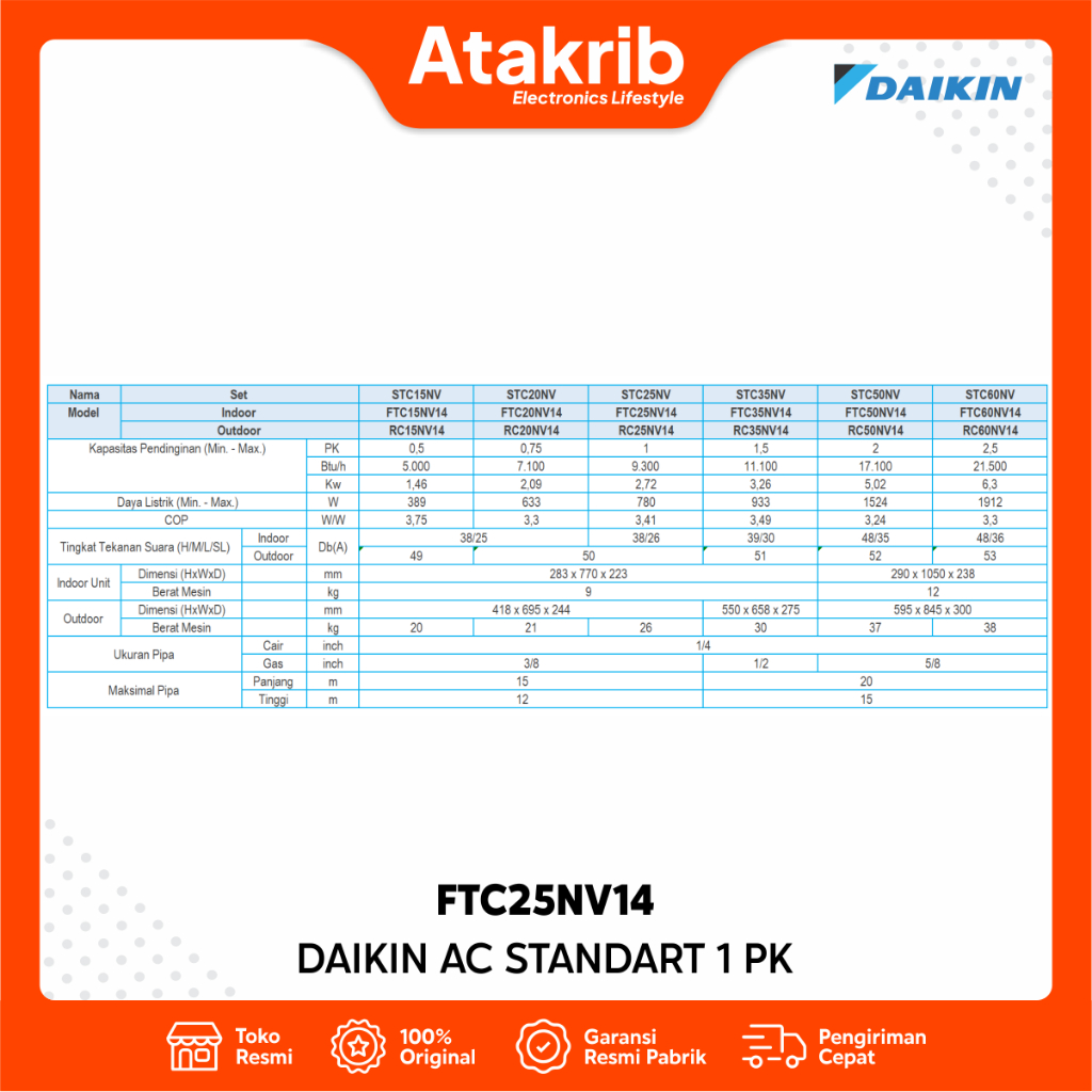 DAIKIN AC STANDART 1 PK FTC25NV14