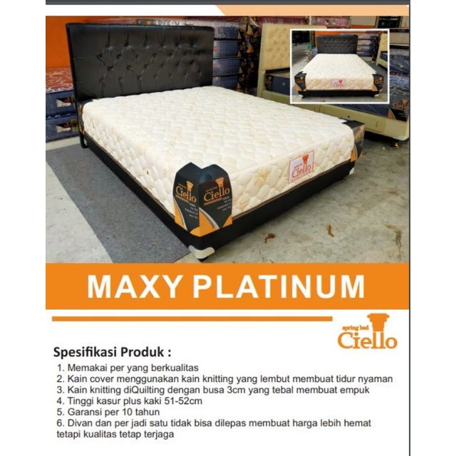 PROMO DIPAN & SPRINGBED CIELLO PLATINUM ON SET - GRATIS PENGIRIMAN AREA JOGJA SAJA - UKURAN 160 X 200