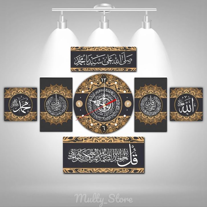 JAM DINDING KALIGRAFI 1SET MEWAH 4IN1 TAMPILAN ELEGAN & MENAWAN HIASAN DINDING TERLARIS