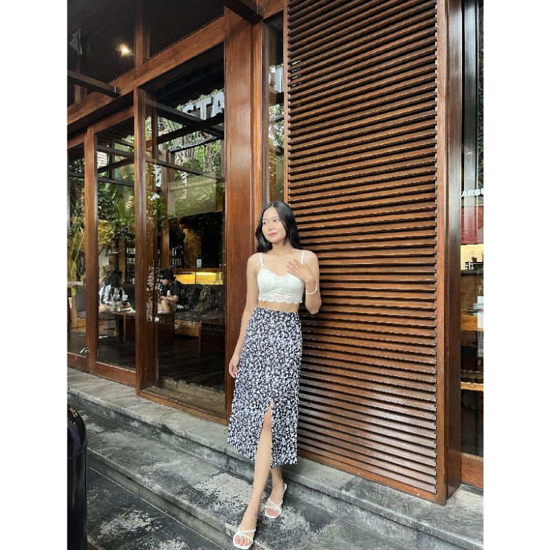 ROK MIDI BELAH SAMPING - ROK PENDEK - ROK KASUAL - ROK PANTAI - MOTIF BUNGA A-LINE
