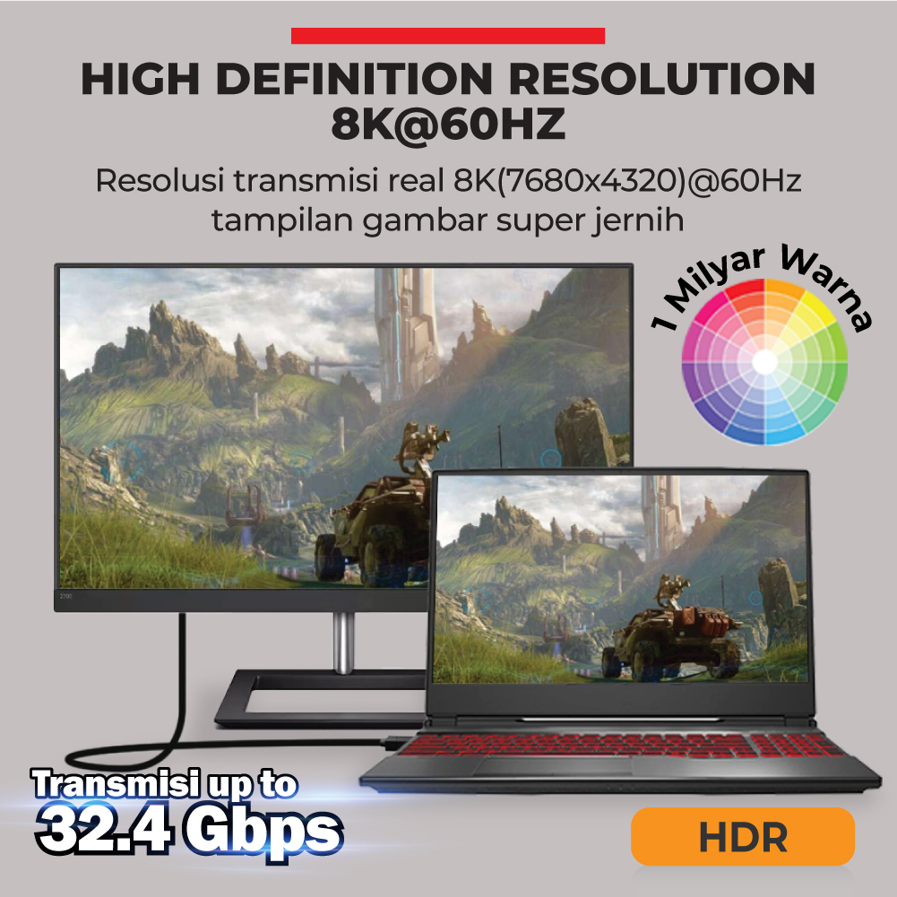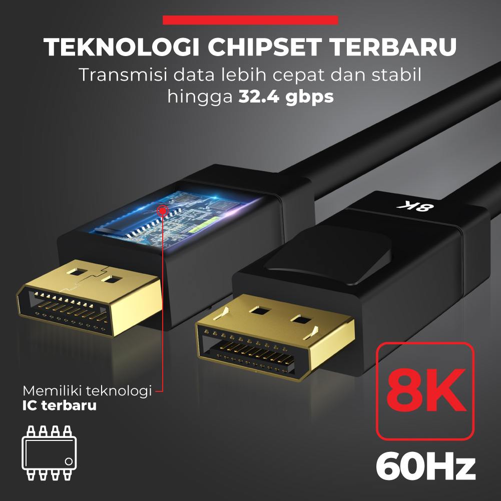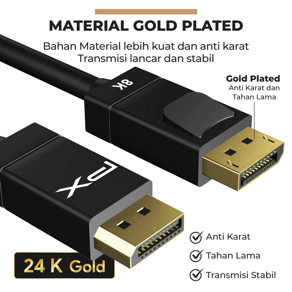 KABEL DISPLAY PORT MALE TO MALE LAPTOP MONITOR DP 8K 2 METER PX DP-2MM