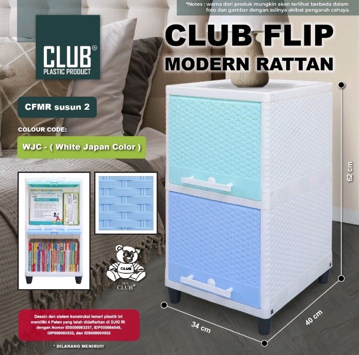 Club Lemari Pakaian Plastik Flip 2 Susun Lemari Baju Mini Side Table Nakas Laci 2 Susun Pink Ungu