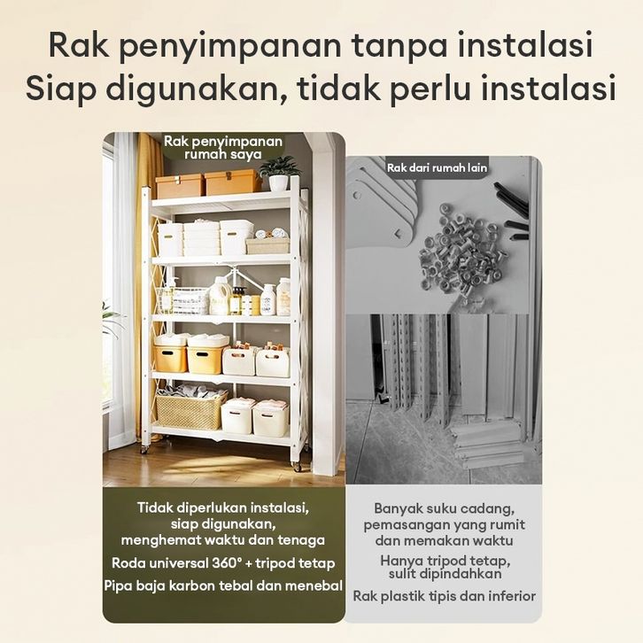 { PROMO} Rak Dapur Lipat Serbaguna Rak Besi Susun 5 Tingkat Rak Penyimpanan Susun Multi-fungsi