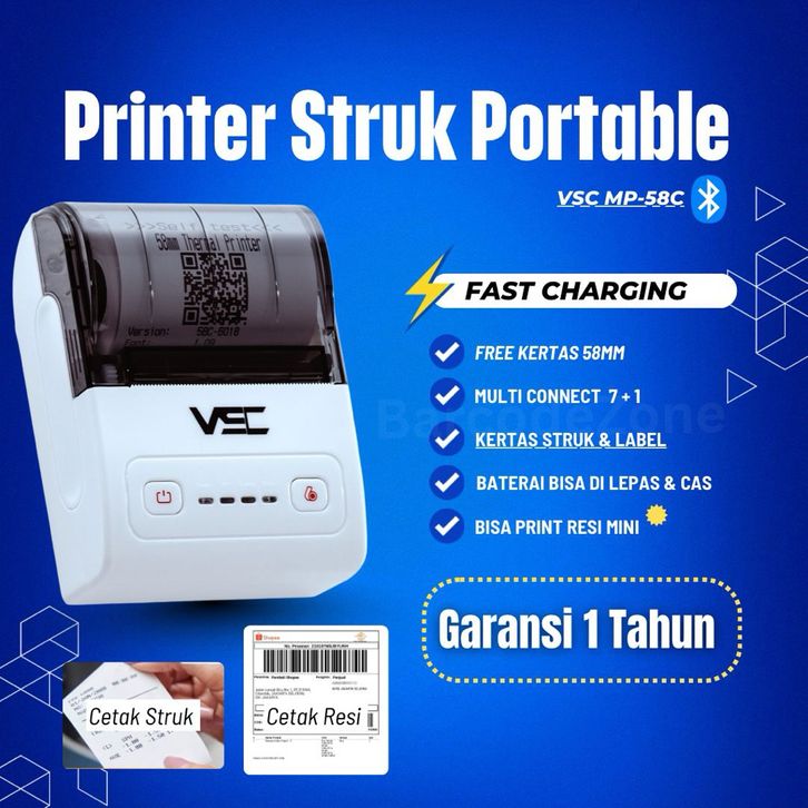 {PROMO} Printer Bluetooth Thermal VSC Mp-58M Putih 58mm Suport Fast Charge/Charging - Type C - Powerbank