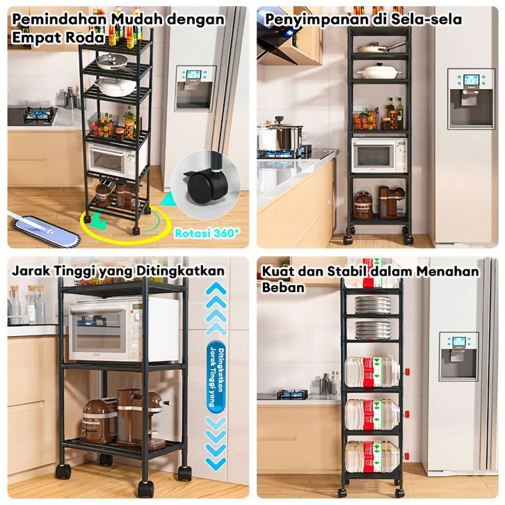 Rak Dapur Serbaguna Rak Susun Dapur Serbaguna Rak roda Rak Troli Susun Rak kamar mandi Rak Salon Rak Penyimpanan 6