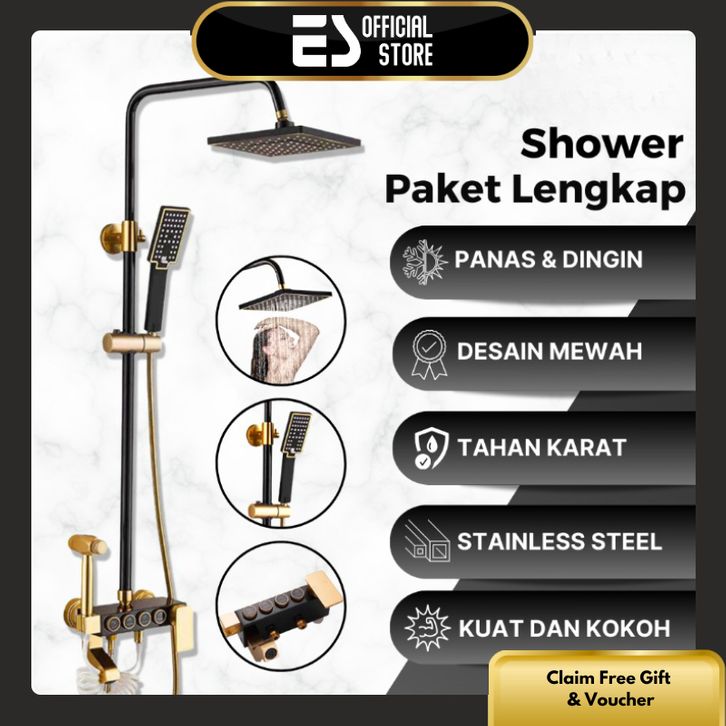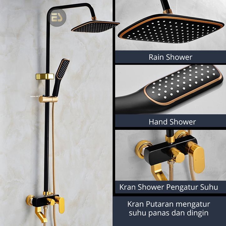 Shower Kamar Mandi ES Set Shower Kamar Mandi Rain Shower Keran Cabang Panas / Dingin Paket Lengkap Shower