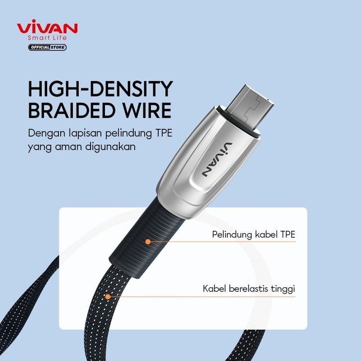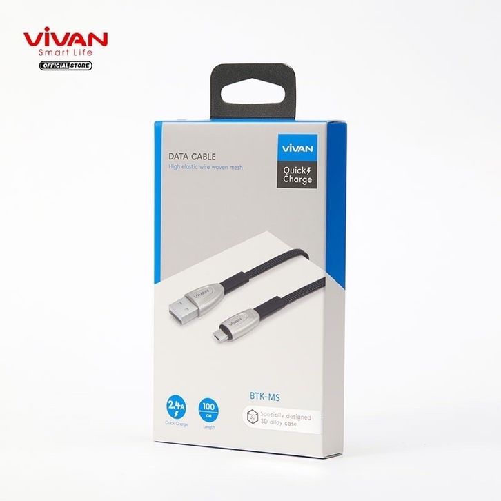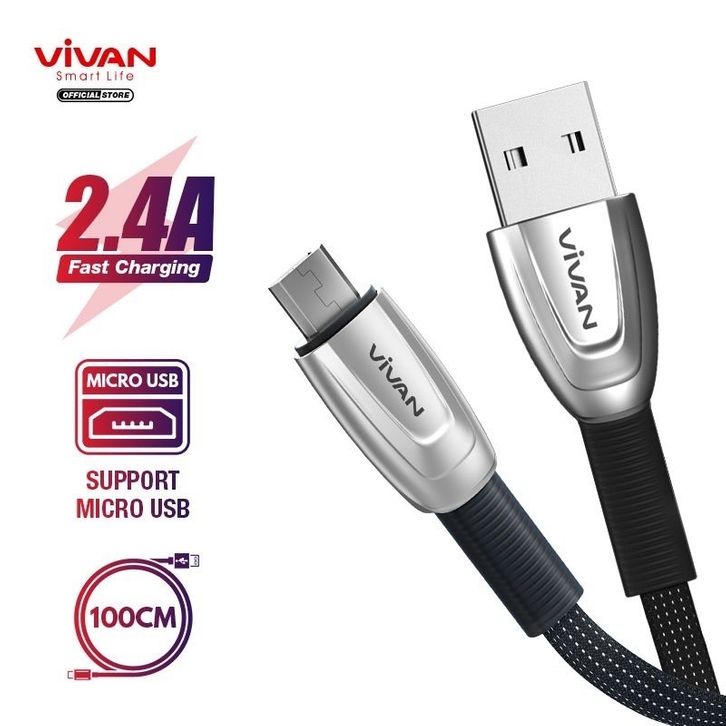 Kabel Data Micro USB Cable Braided 1M Black Vivan BTK-MS