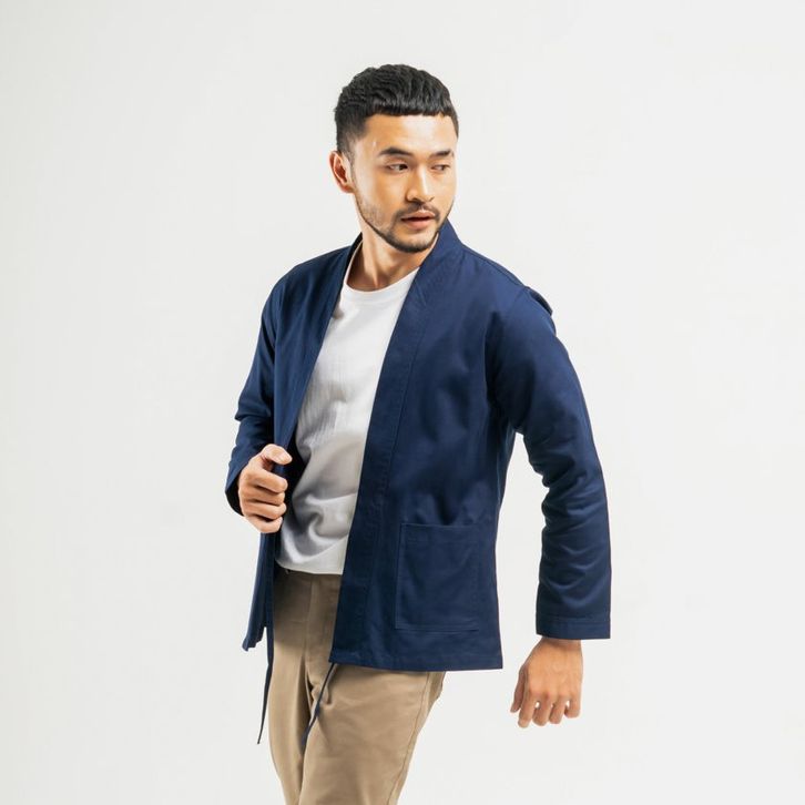 Outwear Pria Zaemerci Kimono Kanvas Lengan Panjang Pria Outer Casual Unisex Original Outwear Jacket