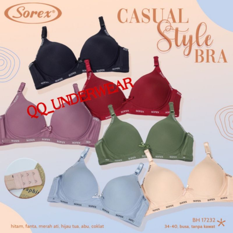 BRA SOREX 17232 BH TANPA KAWAT BUSA TIPIS CUP SEDANG SIZE 34-40 KAIT 2 BH SOREX 17232 SUPER SOFT TERLARIS