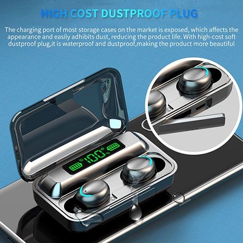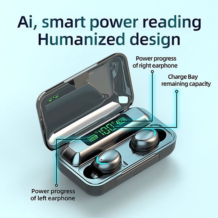 Headset Bluetooth F9 5 Full Bass TWS Wireless Earphone Powerbank 2200 Mah