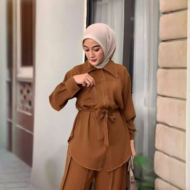 One Set Nira Setelan Baju Atasan Dan Celana Kulot Crinkle Airflow Premium Setelan Wanita Murah Kekinian