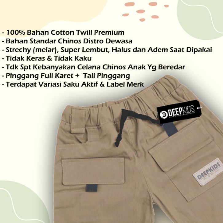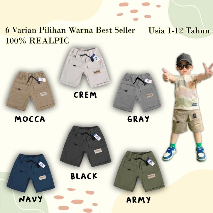 Celana Pendek Cargo Anak Laki Laki Bahan Katun Twill Chinos Combed Premium Usia 1-12 Tahun