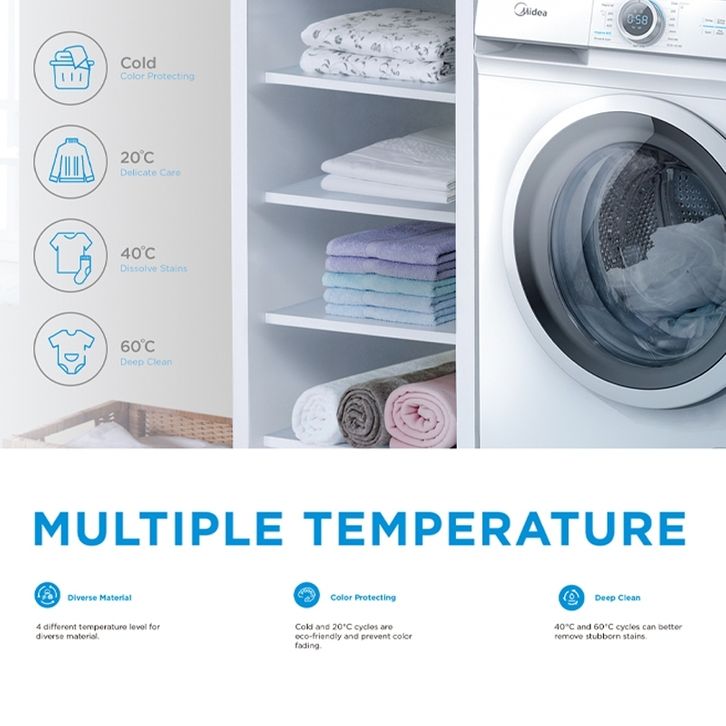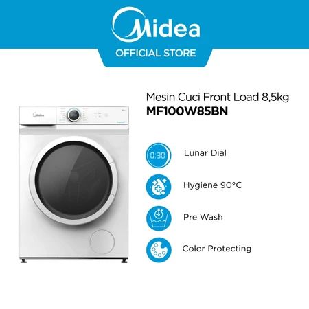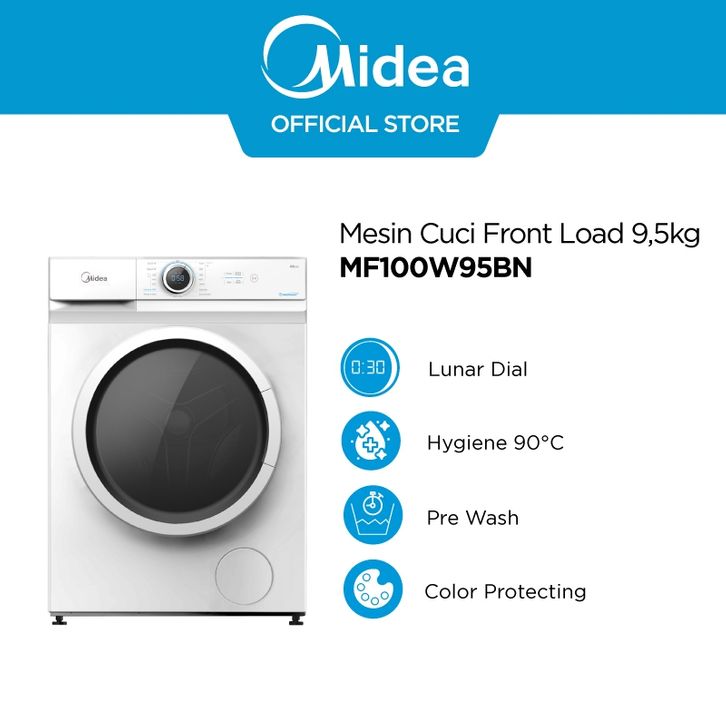 MESIN CUCI FRONT LOADING MIDEA KAPASITAS 9 8 7 KG PINTU BUKAAN DEPAN 1 TABUNG LUNAR DIAL MULTIPLE TEMPERATURE
