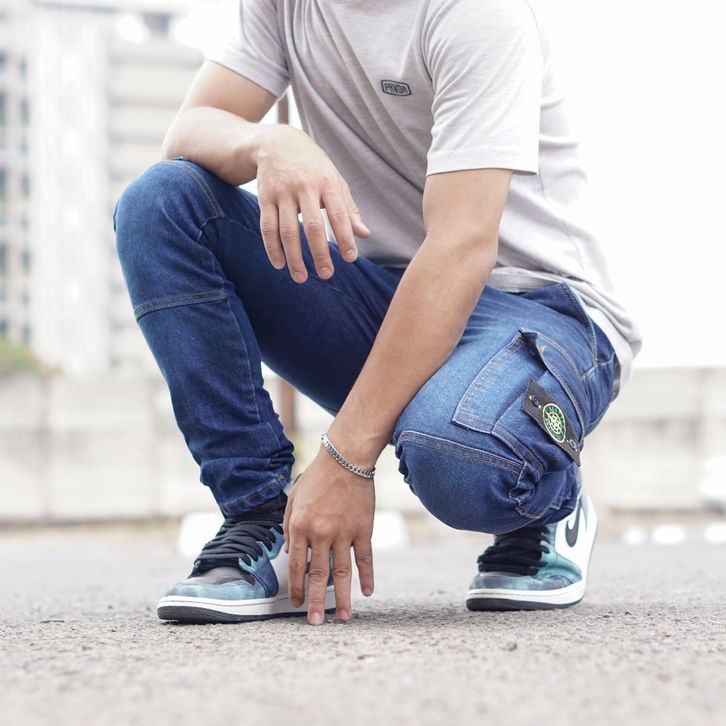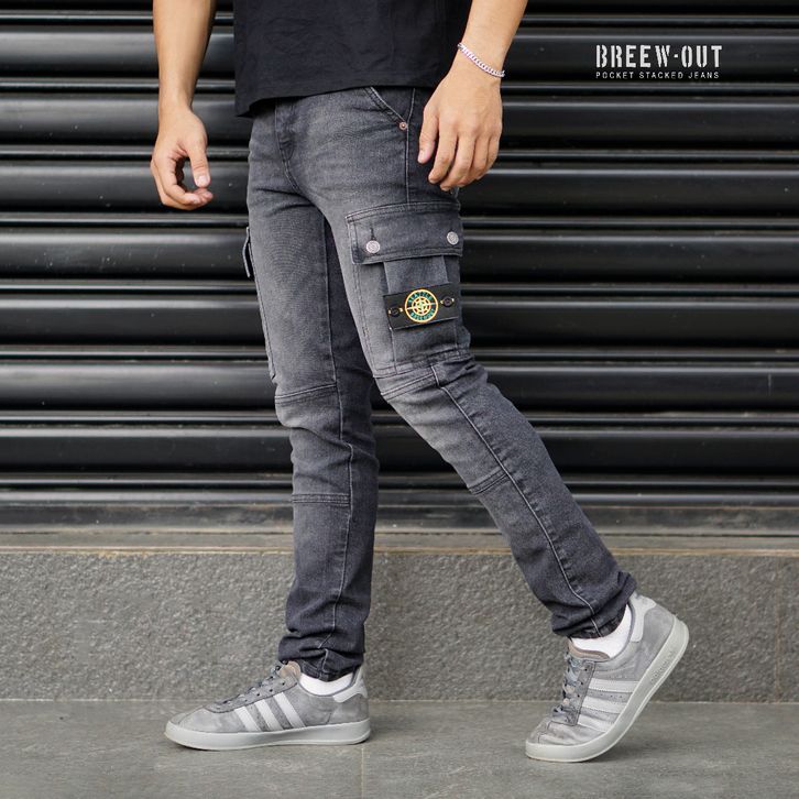CELANA CARGO DENIM PATCH BADGE EMEM ORGINAL BREEW-OUT