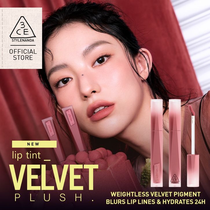 3CE VELVET LIP TINT PLUSH SOFT BLUR MATTE 24H NON DRYING LIGHTWEIGHT COMFORTABLE LIPSTICK ORIGINAL TERLARIS