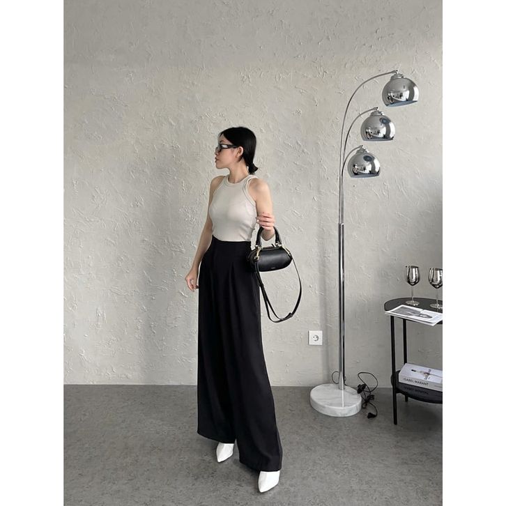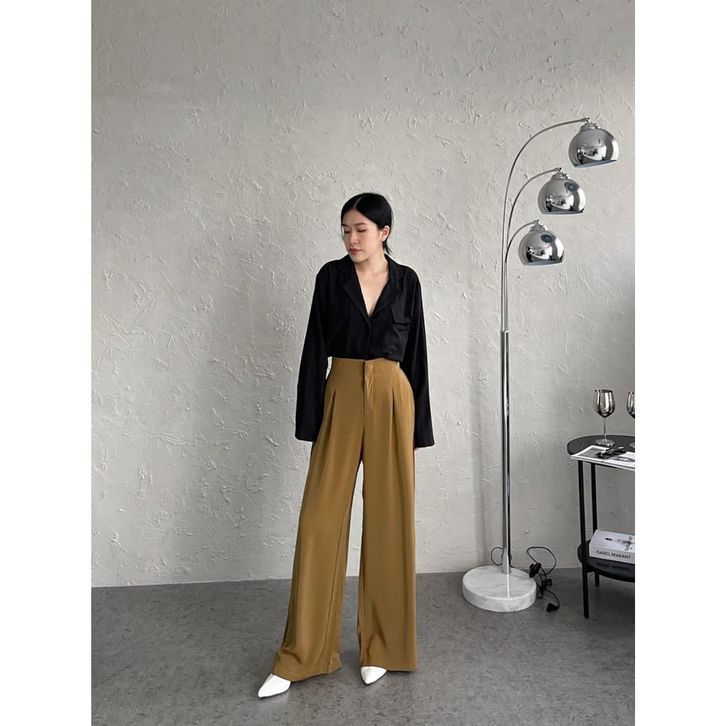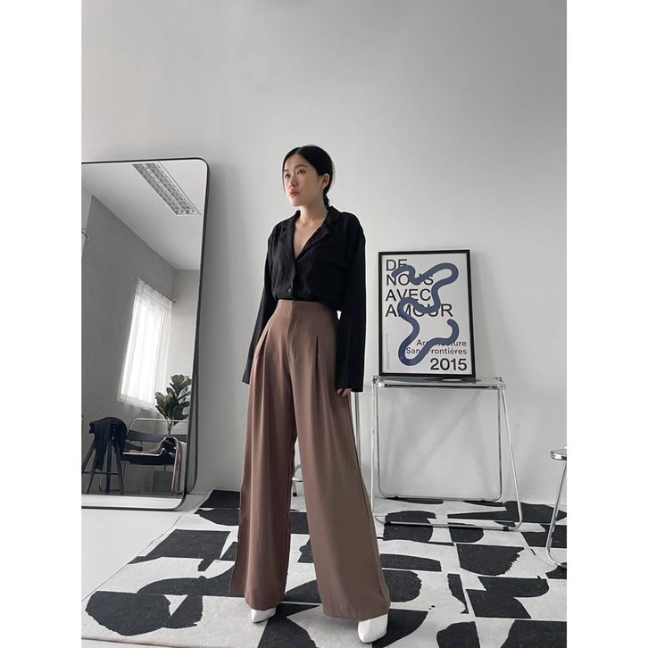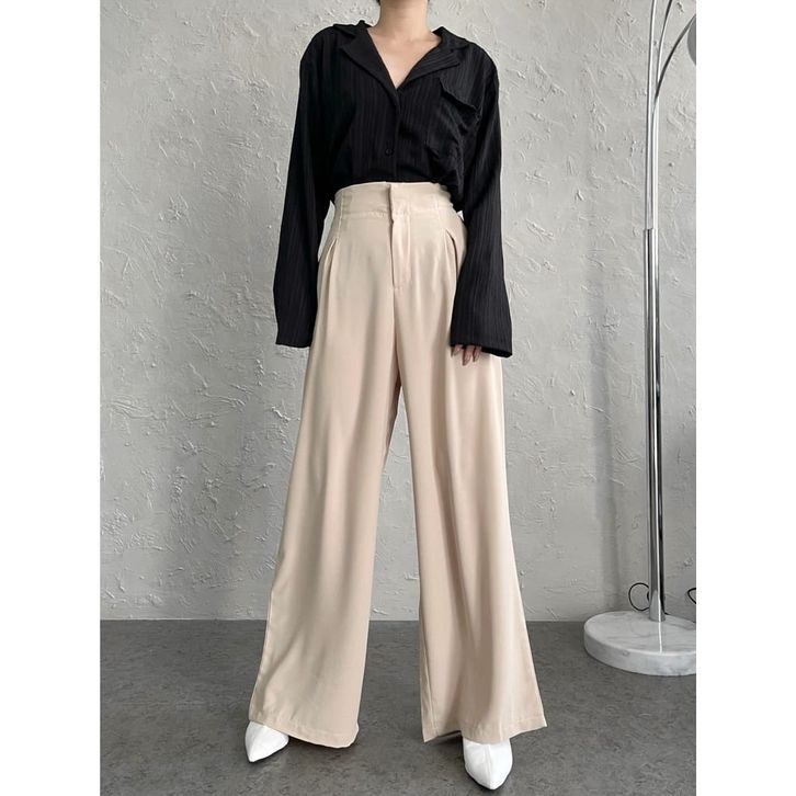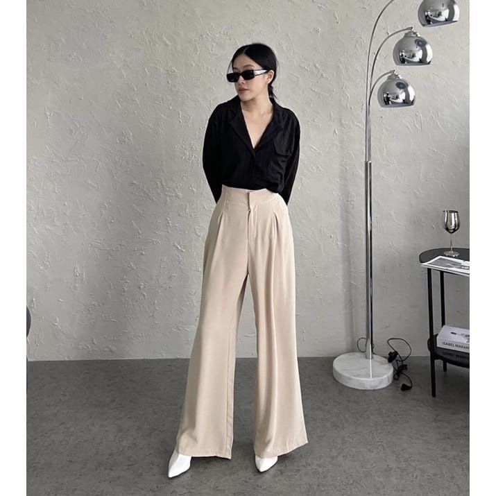 Vallina - Loose Pants Highwaist Cullote Premium Bawahan Celana Kulot Palazo Basic Kerja Kantor Wanita Korean Style 4.3