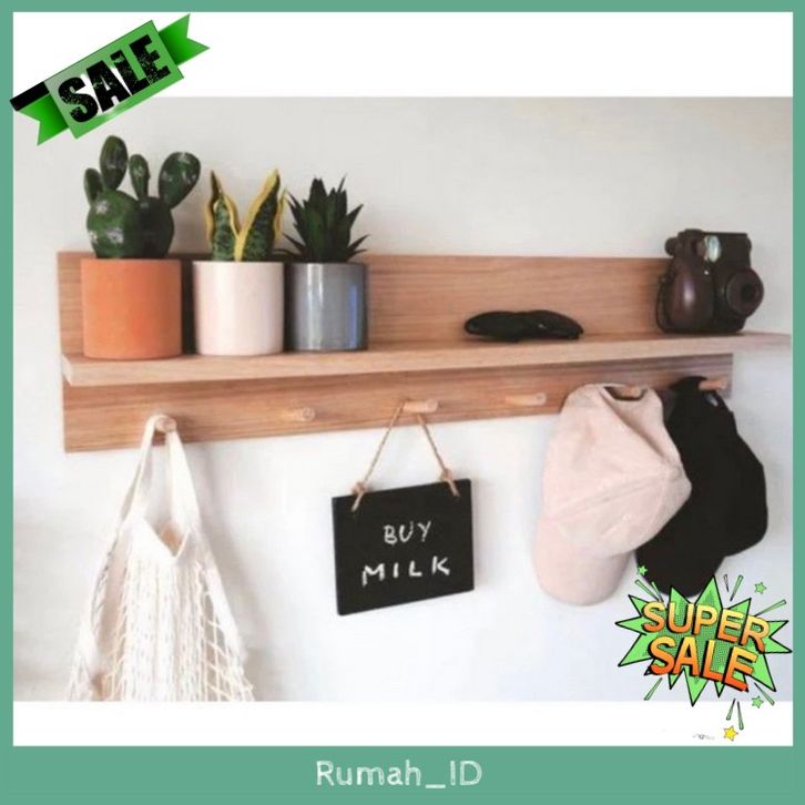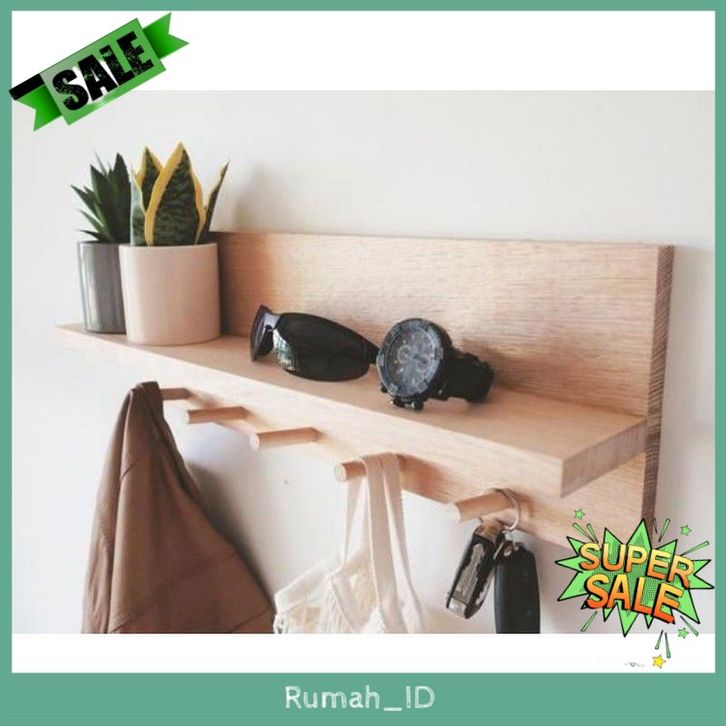 rak dinding rak tempel tempat gantungan kunci buku baju rak kayu serbaguna key holder