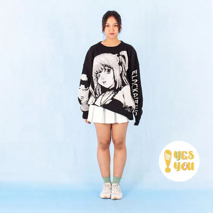 BAJU ATASAN WANITA YESYOU AIKO BLACK OVERSIZED KNITWEAR OUTFIT WANITA KEKINIAN BAHAN COTTON KNIT PREMIUM BESTSELLER