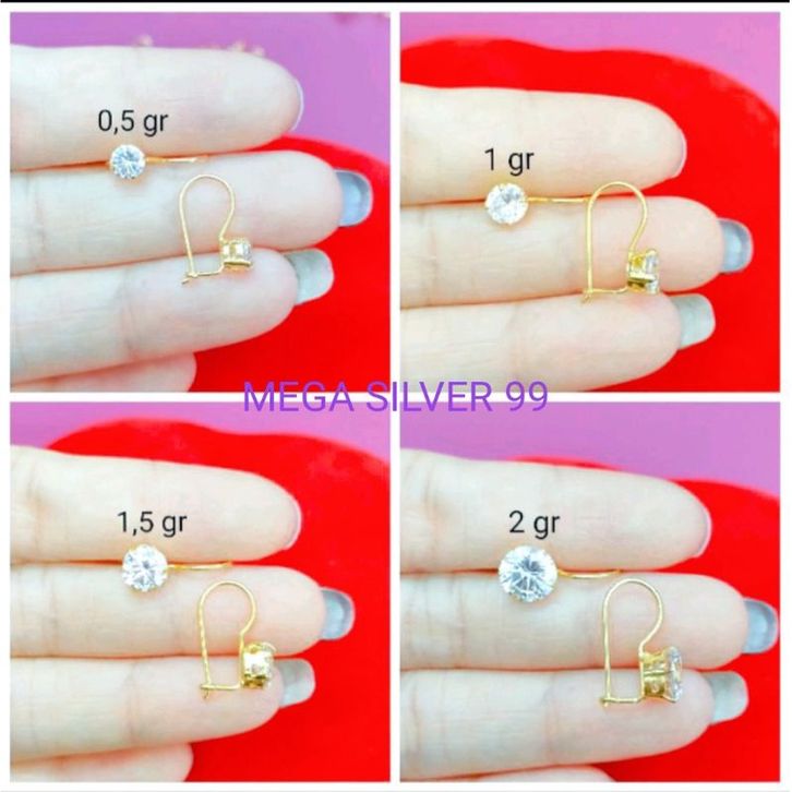 ANTING DESY MATA PUTIH PERAK ASLI 925 LAPIS EMAS