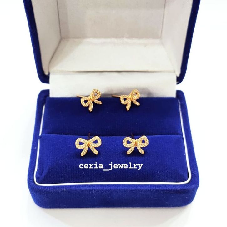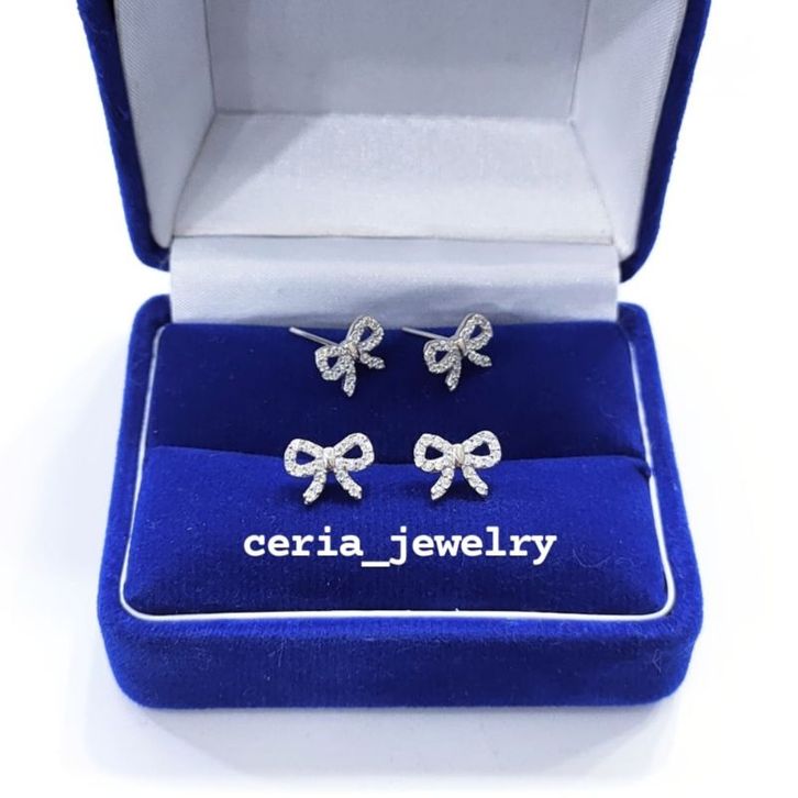 Anting Giwang Perak Asli Silver 925 Lapis Emas Putih Model Pita - Perhiasan Wanita