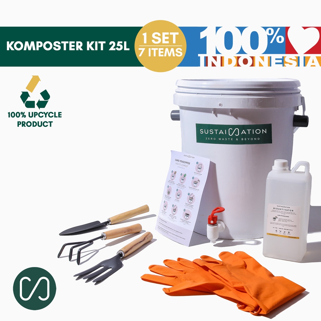 SUSTAINATION PAKET KOMPOSTER 25 LITER LENGKAP UNTUK PEMULA DENGAN PAKET SEKOP 3 PCS + SARUNG TANGAN