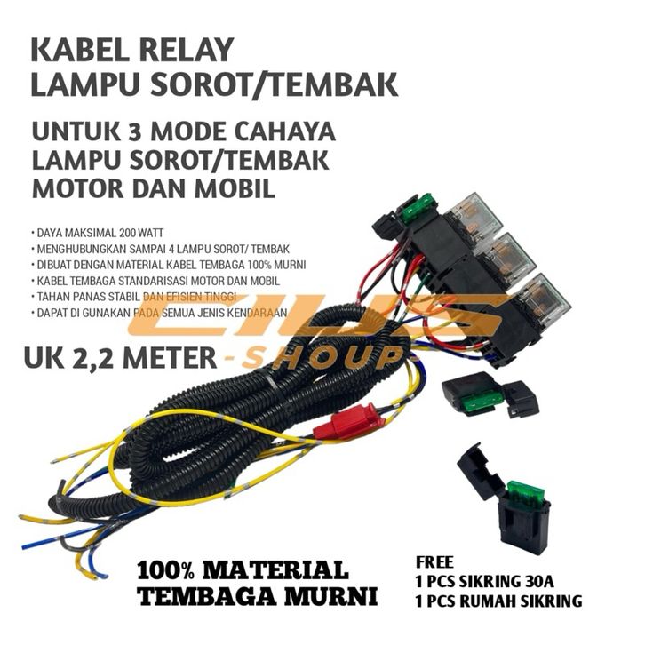 RELEY KABEL SET LAMPU LED TEMBAK / LAMPU LED SOROT HI LOW UNTUK MOTOR DAN MOBIL