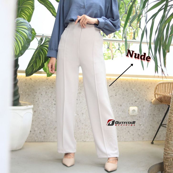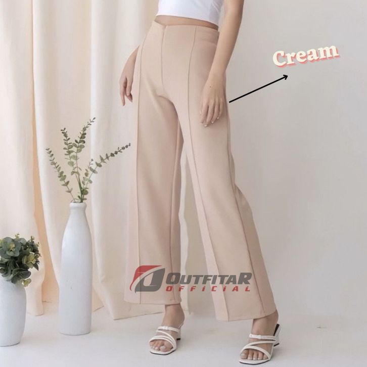 Celana Wanita Kulot Garis Basic HW Irene Cullotes Scuba Wide Leg Kulot Premium