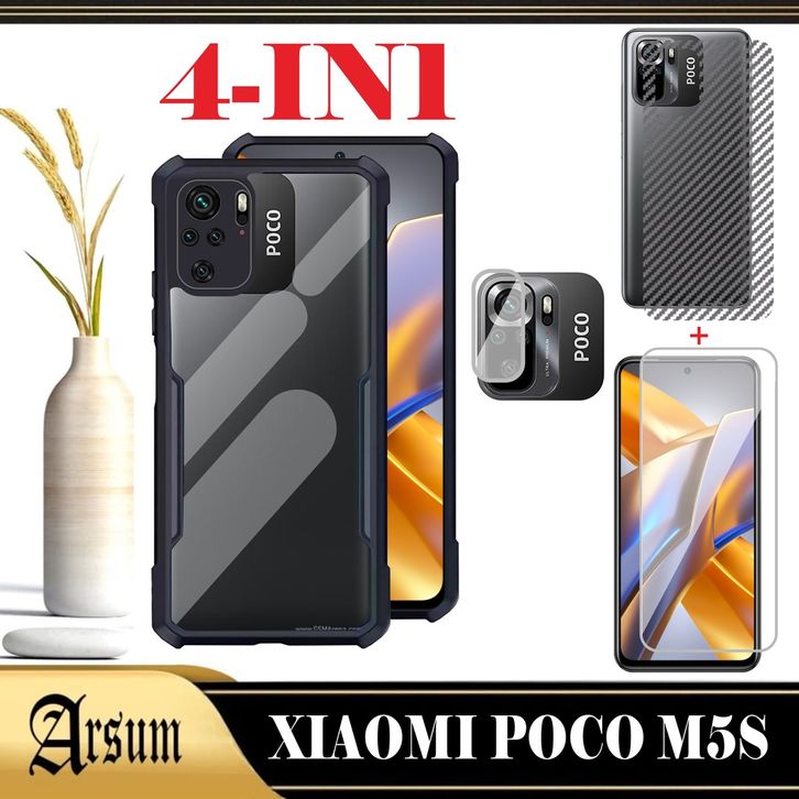 PAKET 4IN1 CASING TRANSPARAN XIAOMI POCO M5S 2022 ,X5 PRO 5G ,M5 2022 ,X5 5G 2023 NOTE 12 5G 2022 CASE COVER