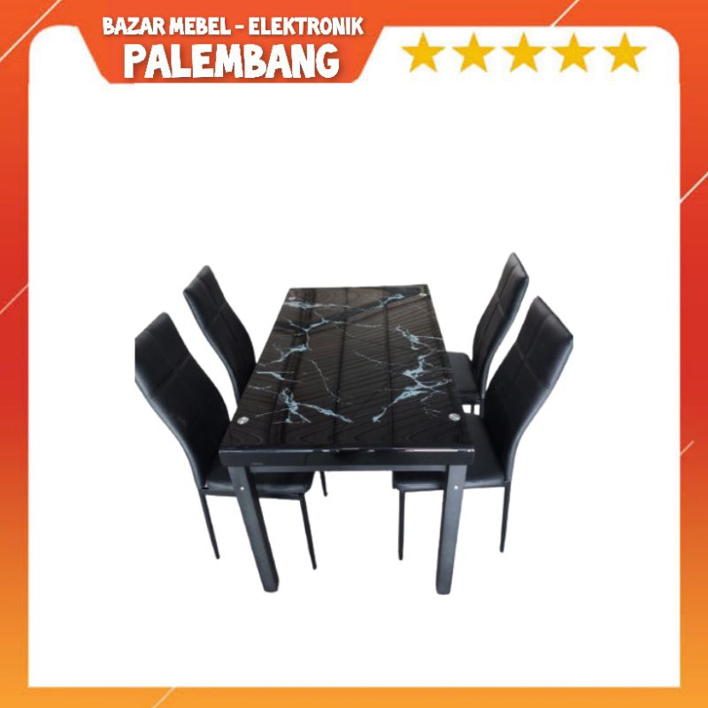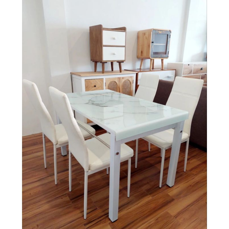 MEJA MAKAN TEMPERED GLASS 4 KURSI MEJA MAKAN MOTIF MARMER KACA TEMPERED DINING TABLE PEVITA