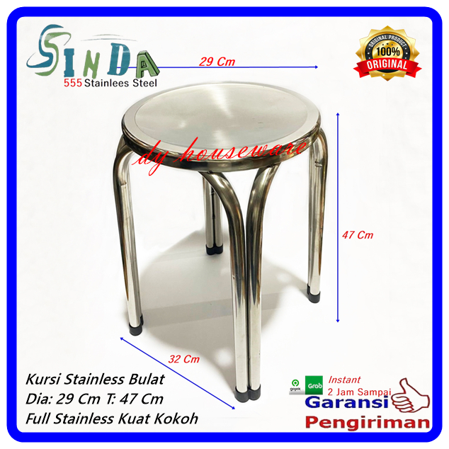KURSI STAINLESS BAKSO BULAT TINGGI 47 CM BANGKU JONGKOK 30 CM FULL STAINLIS KOKOH ( OJOL )