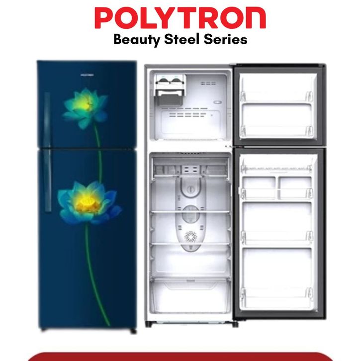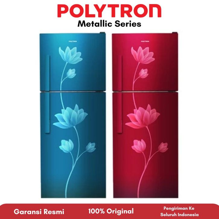 KULKAS 2 PINTU POLYTRON KAPASITAS 220 210 LITER METTALIC BEAUTY STEEL SERIES AUTO DEFROST ICE TWIST POCKET