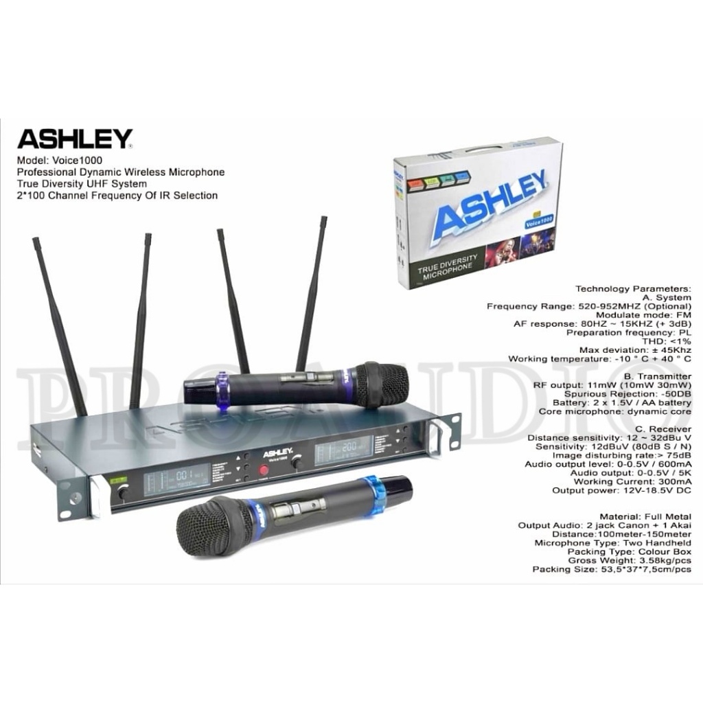 MIC WIRELESS ASHLEY VOICE 1000 VOICE1000 PEGANG 2 MICROPHONE TECHNOLOGY PARAMETERS ORIGINAL