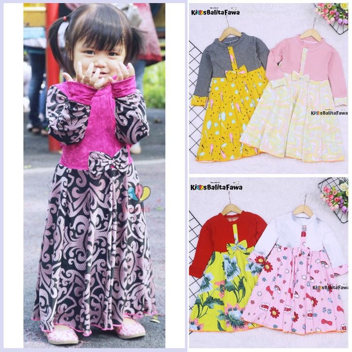 Gamis Pita Uk 1-2 Tahun / Gamis Anak Baju Dress Muslim Ngaji Murah Lengan Panjang Perempuan Girl Kiosbalitafawa