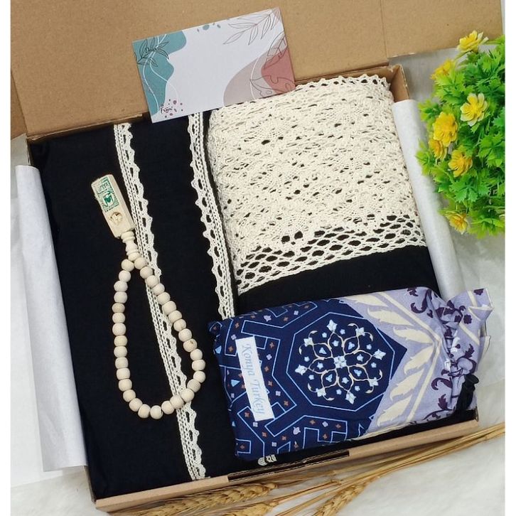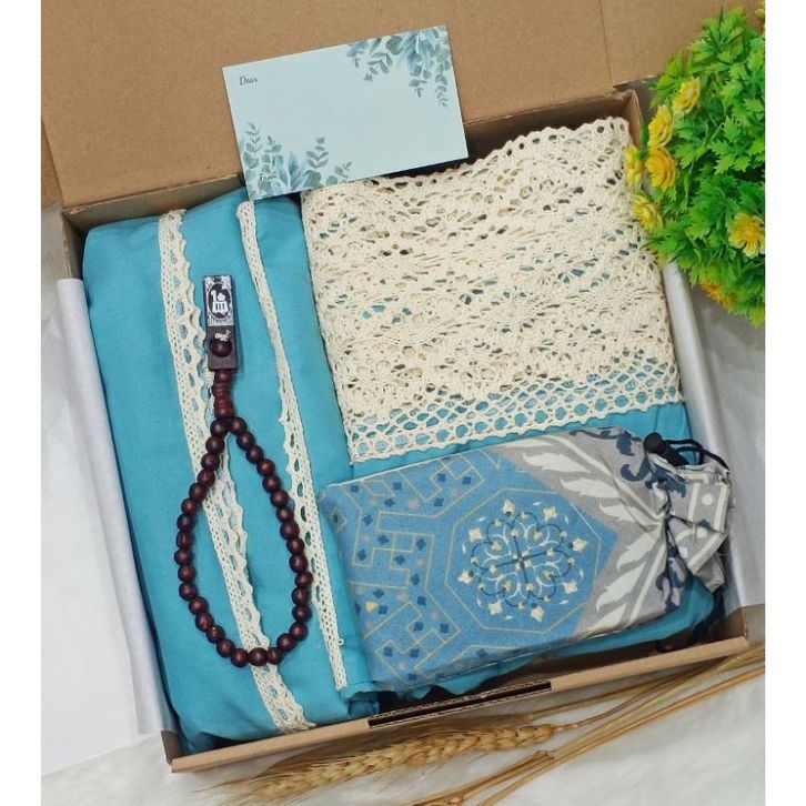 Hamper Mukena Mikro Renda Rajut 2in1 Plus Sejadah Travel Free Tasbih Kado Hadiah Lebaran Idul Fitri Wanita Premium