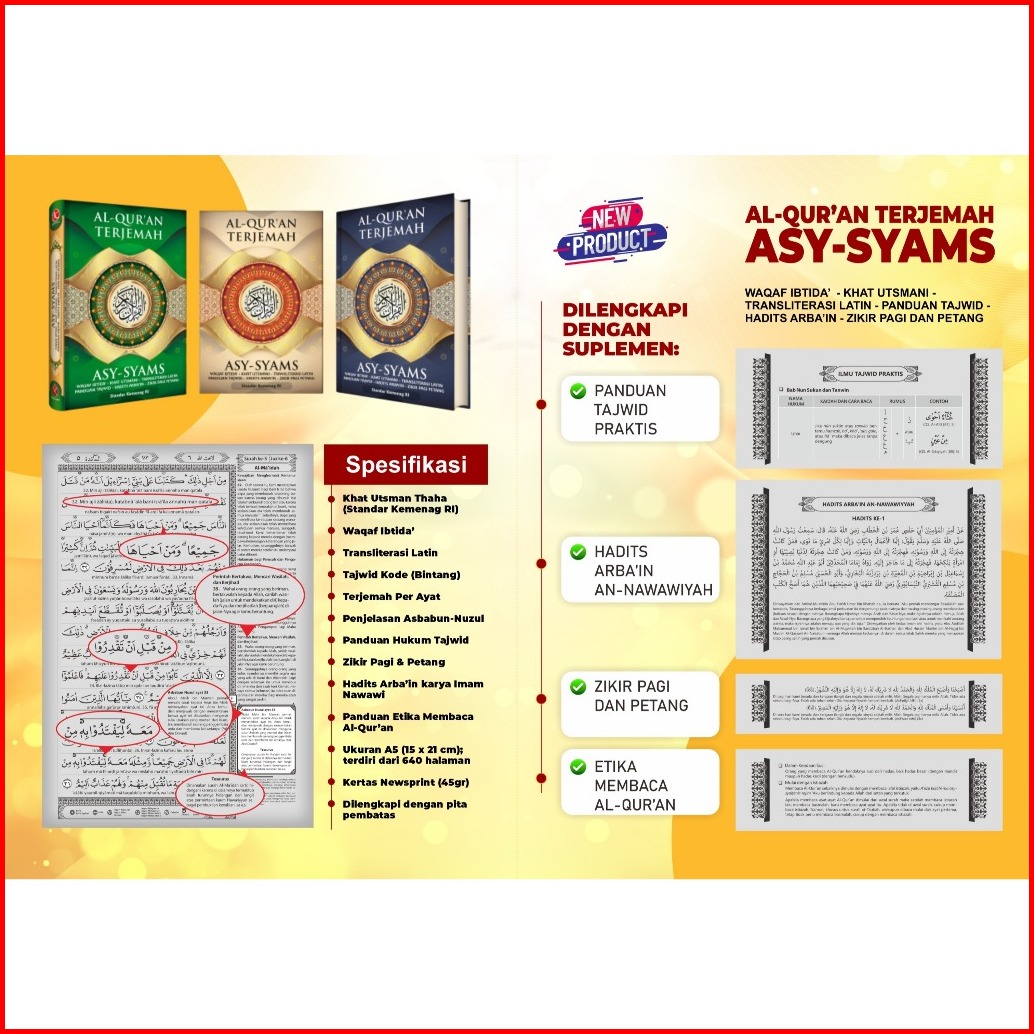 Al Quran Asy Syams Terjemah Latin - Tajwid A5 - Tanda Waqaf - Zikir Pagi Petang - Hadist Arbain