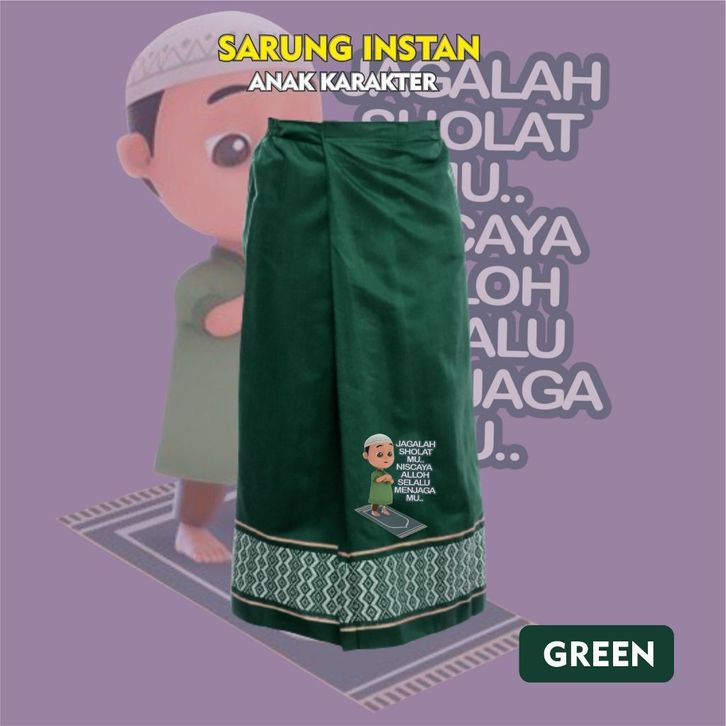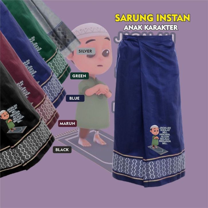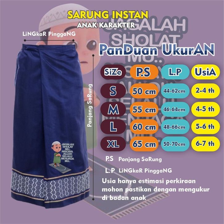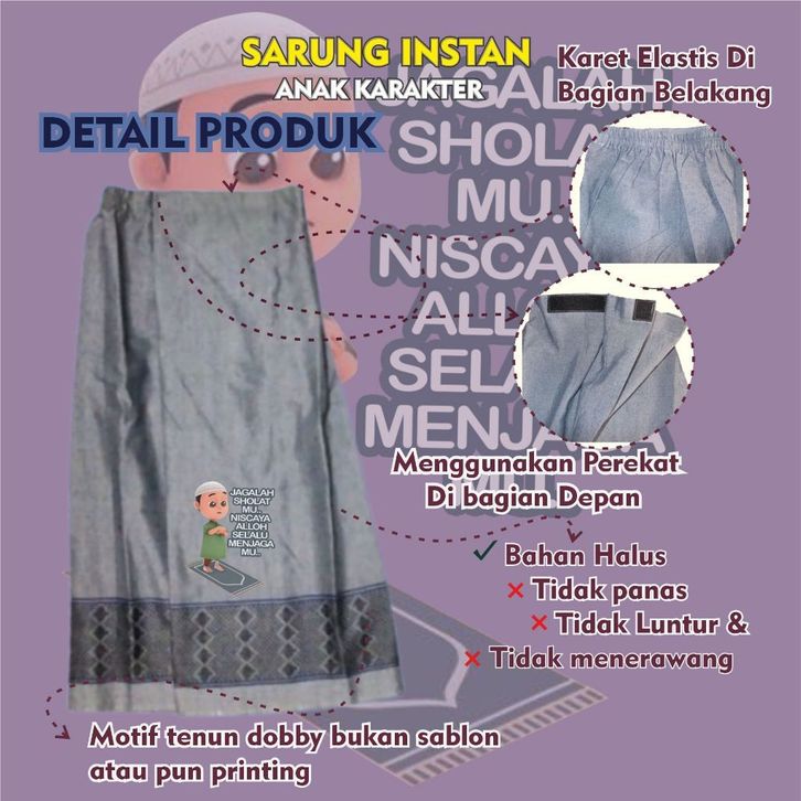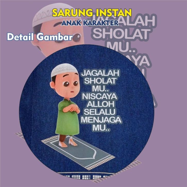 Sarung Instan Anak Laki Laki Kar-Akter Font Jagalah Sholat Mu Untuk Usia 2 Sampai 7 Tahun