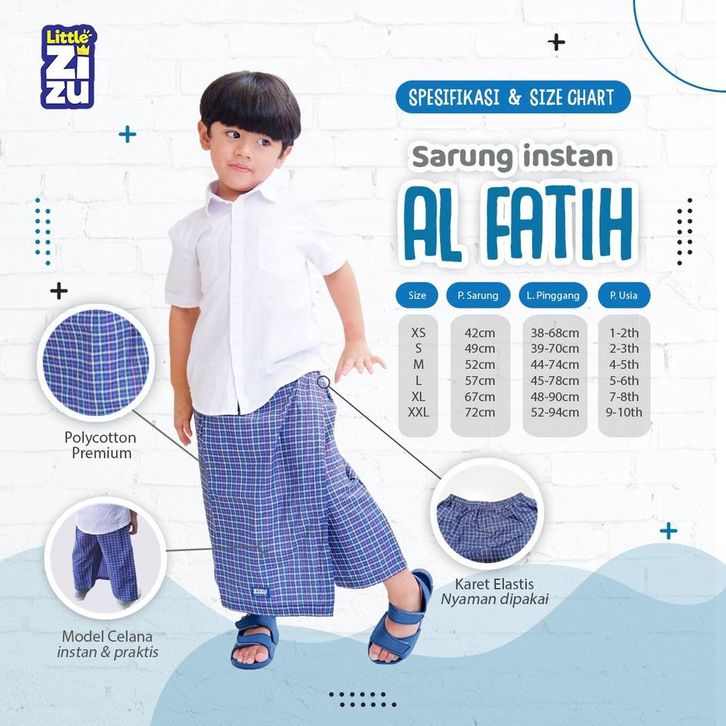 Sarung Celana Anak Al Fatih Sarung Instan Motif Kotak-Kotak Original Little Zizu