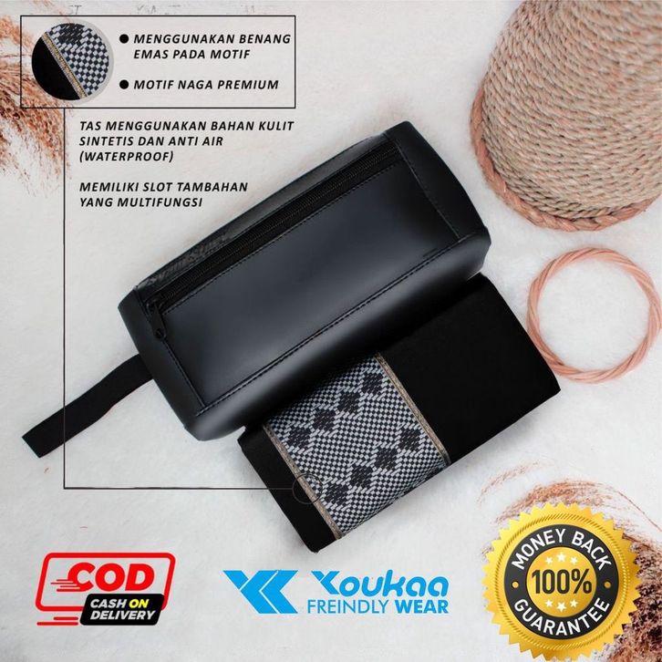 Sarung Travel Untuk Sholat Dengan Kem-Asan Pouch Waterproof Motif Polos Tenun Timbul Doby Sisik Naga