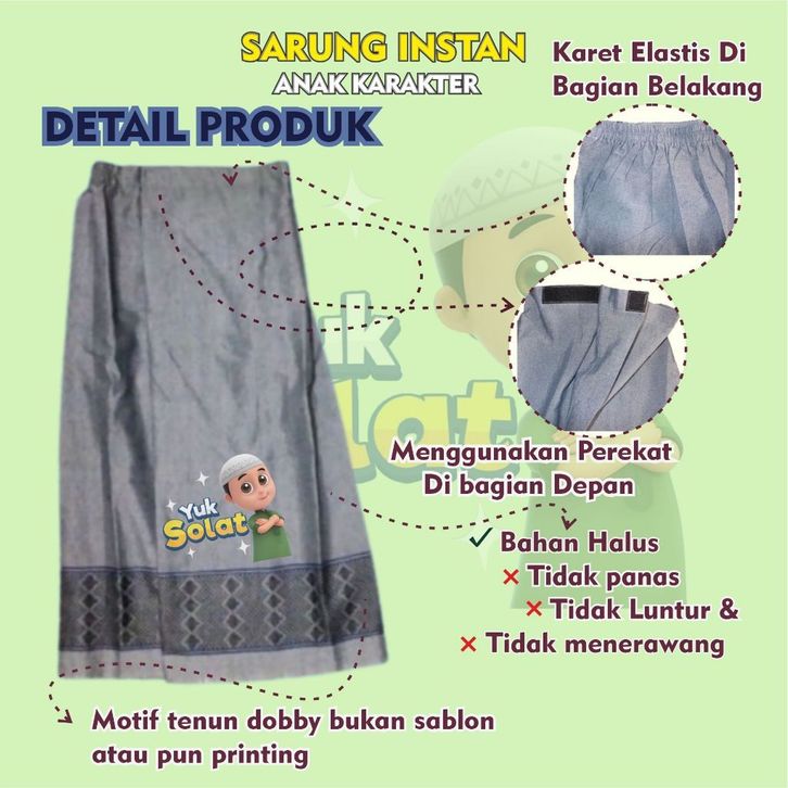 Sarung Instan Anak Laki Laki Kar-Akter Font Sholat Untuk Usia 2 Sampai 7 Tahun