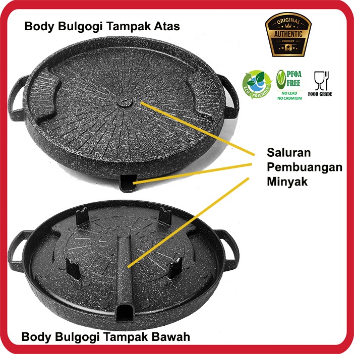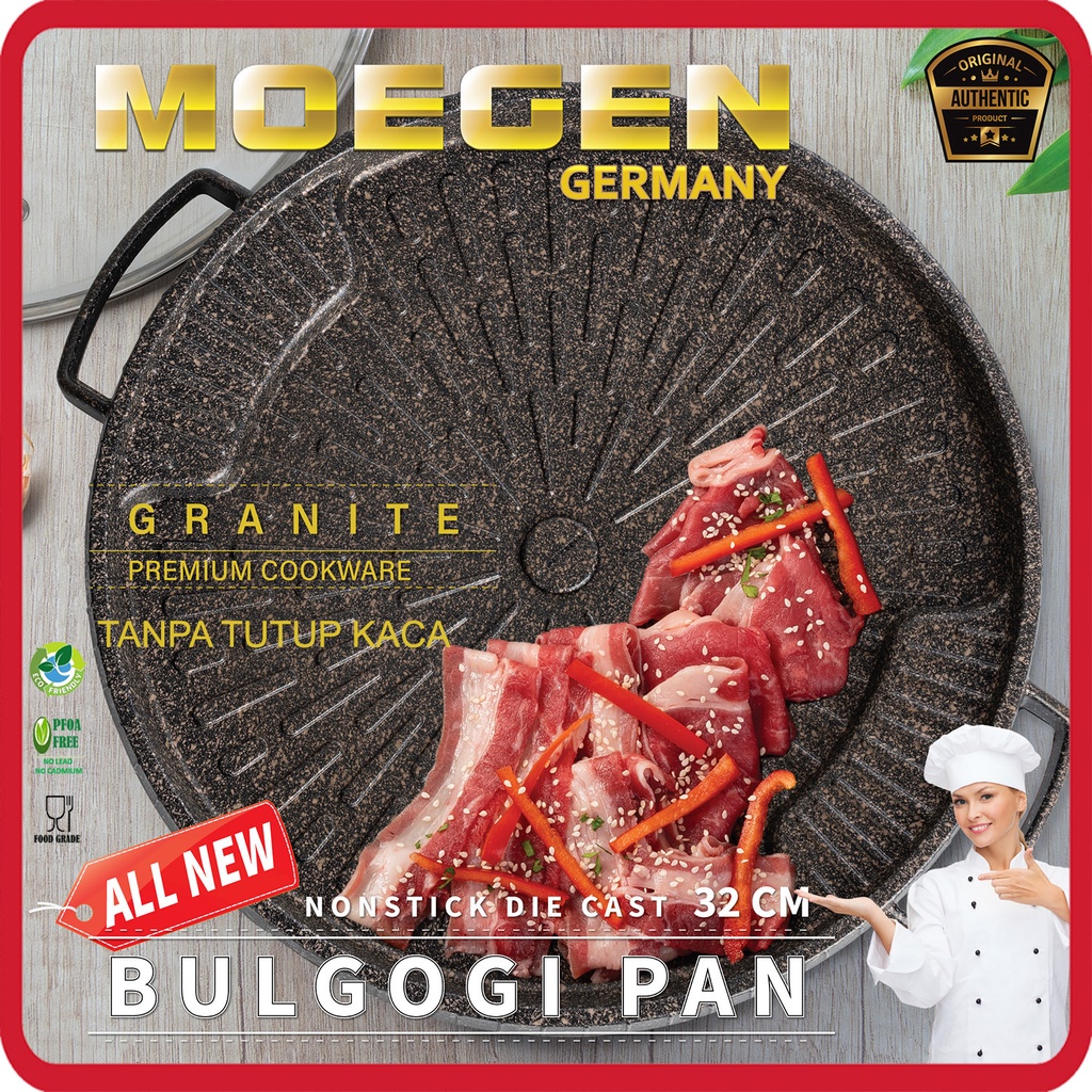 MOEGEN Bulgogi Granite Pan 32cm Panggangan BBQ Grill Pan Anti Lengket Tanpa Tutup Kaca