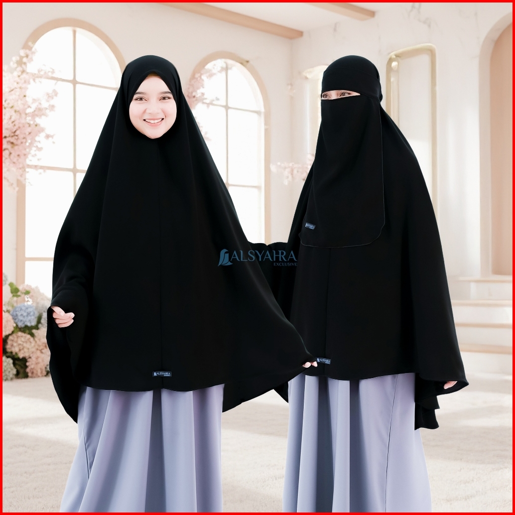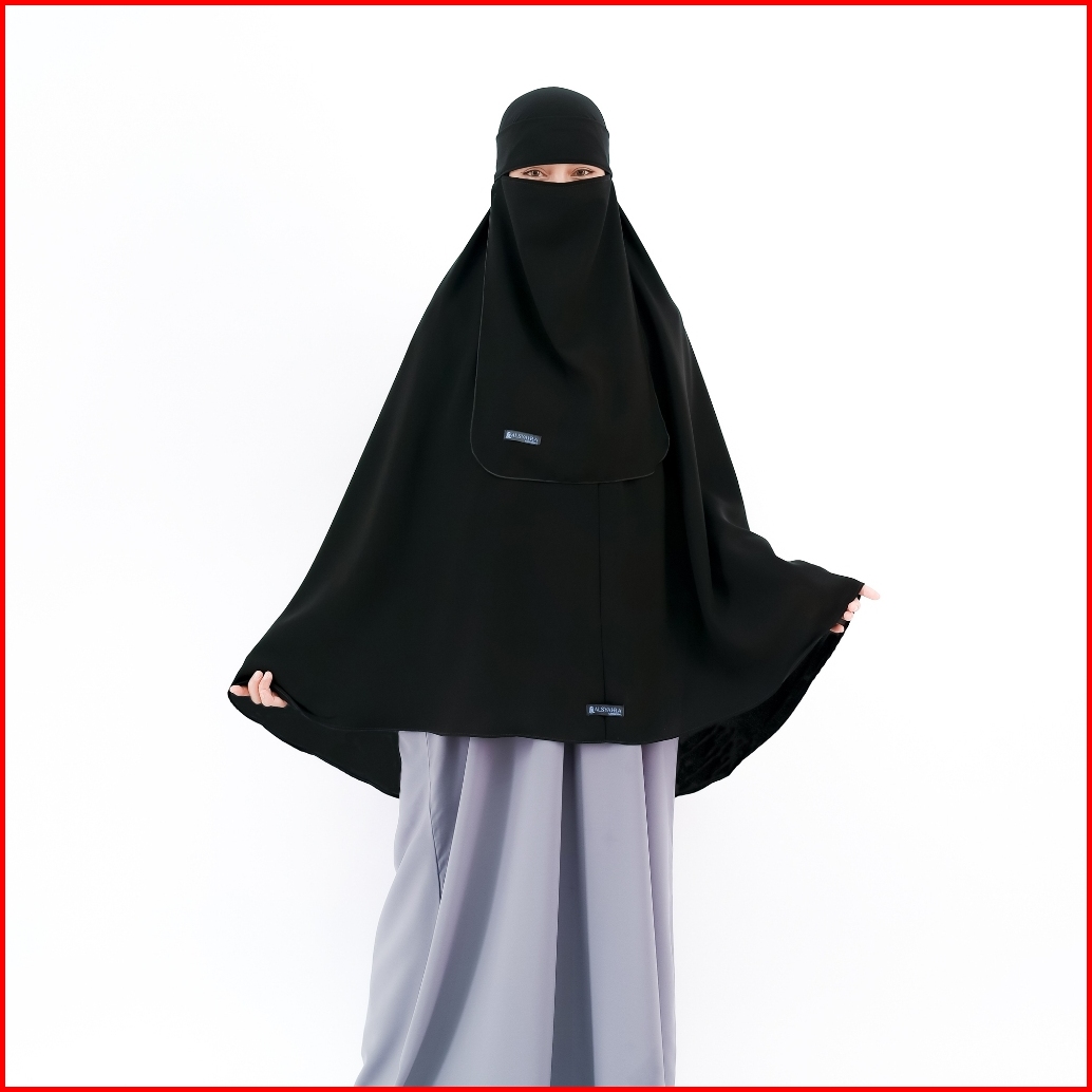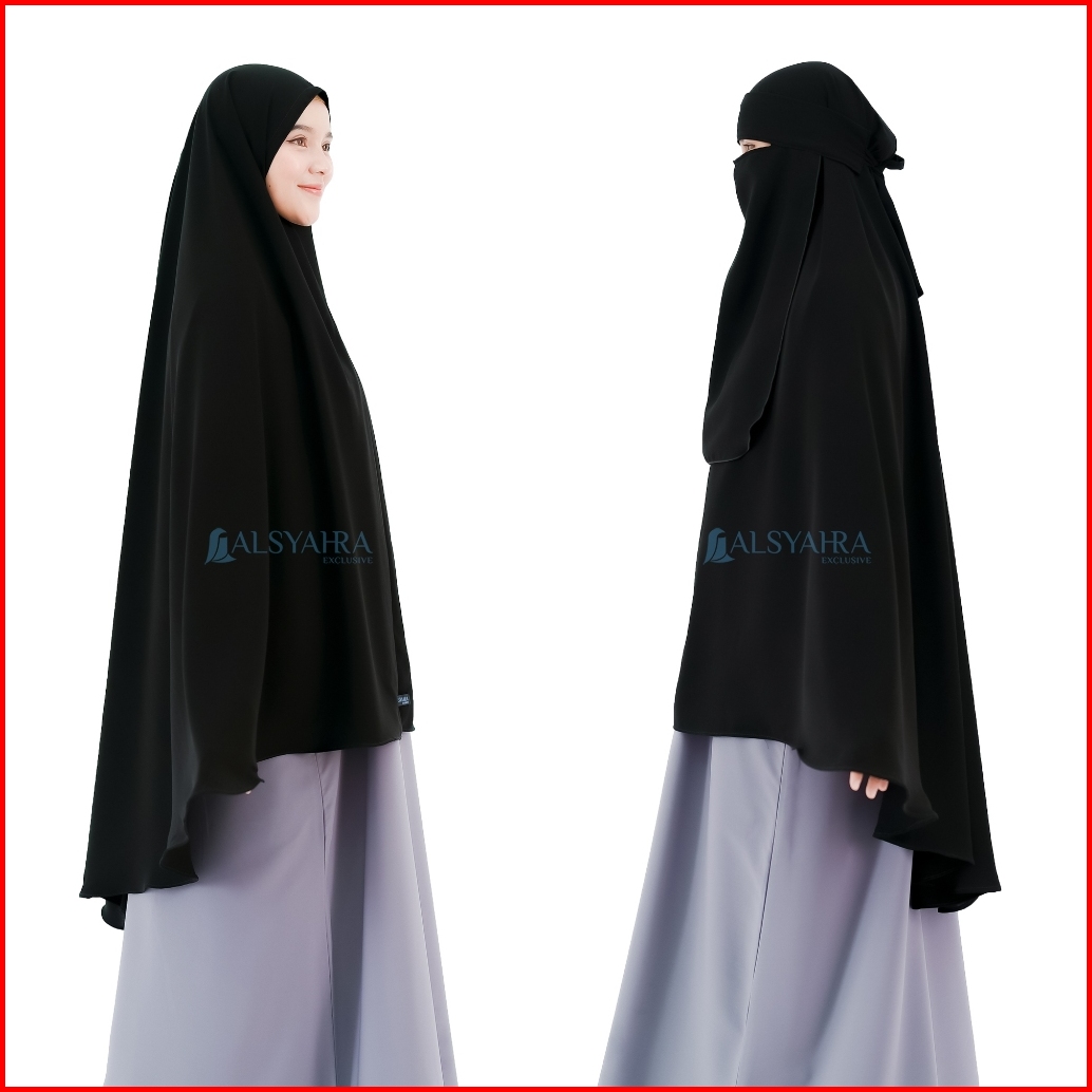 Alsyahra Exclusive - Set Khimar Syari Marwah Non Pad Niqab Bandana Jetblack Size Xl