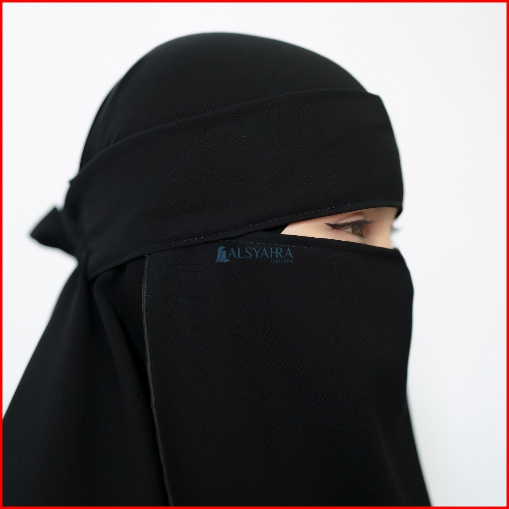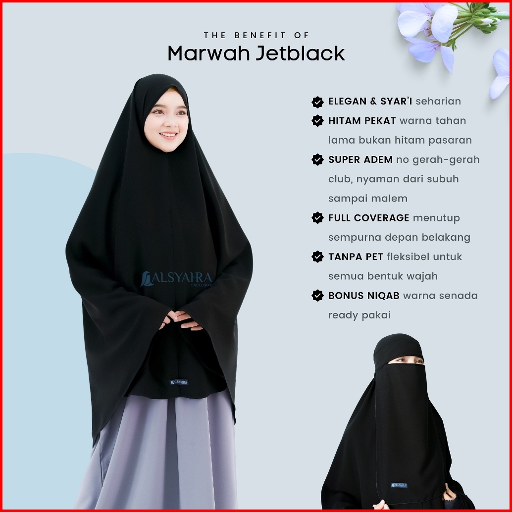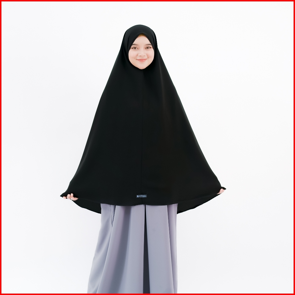 Alsyahra Exclusive - Set Khimar Syari Marwah Non Pad Niqab Bandana Jetblack Size Xl