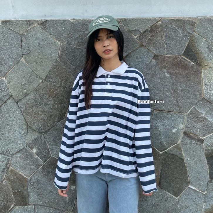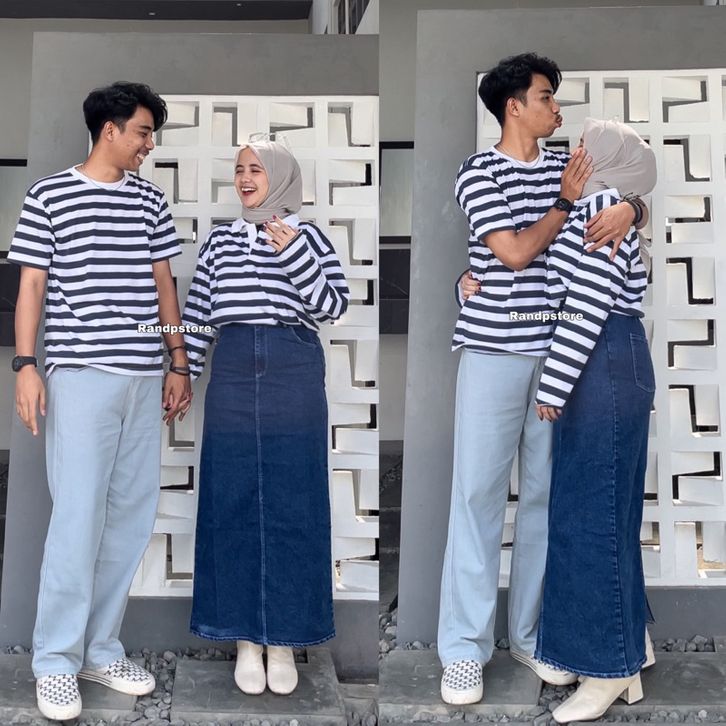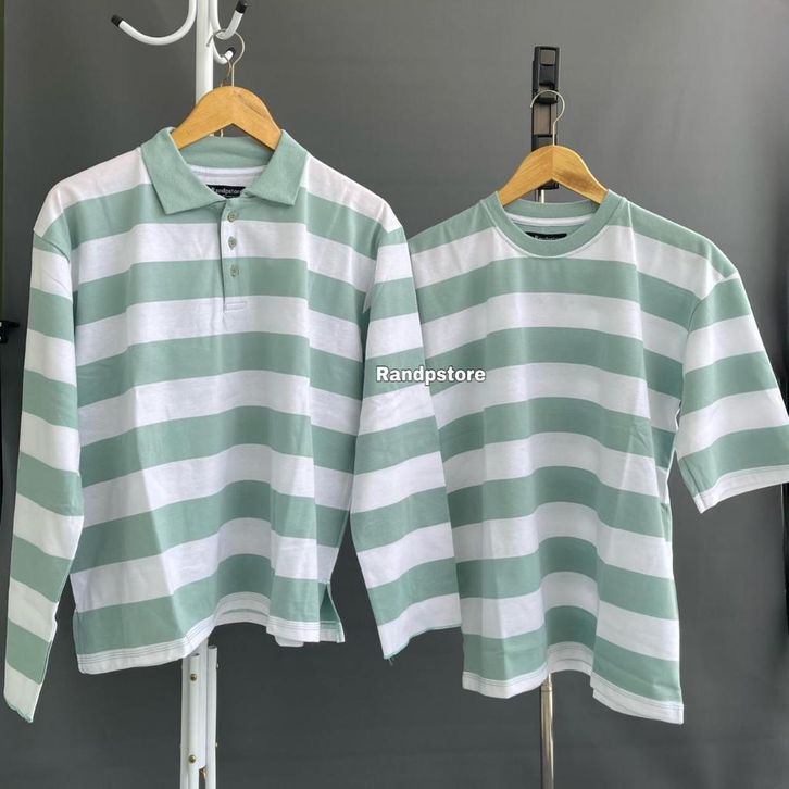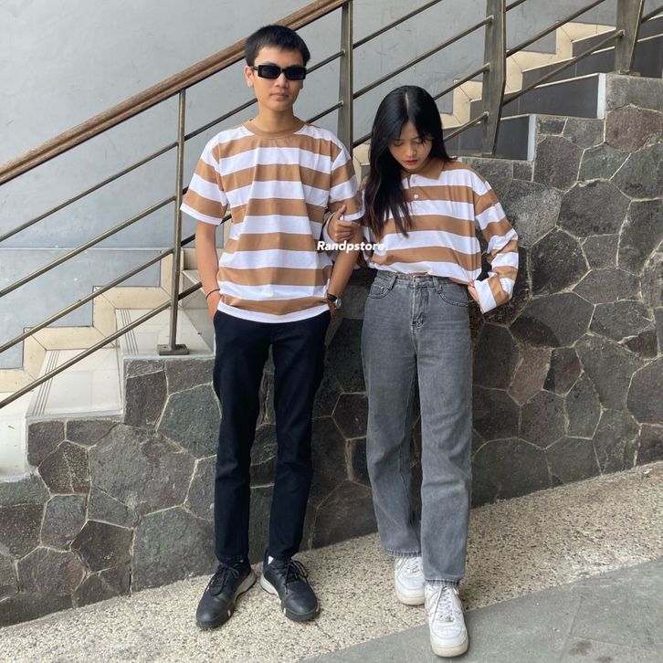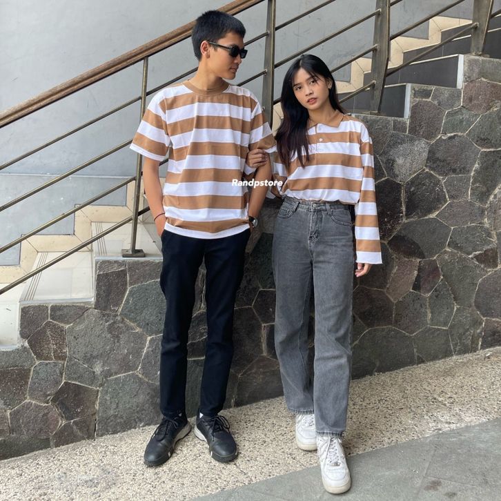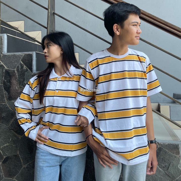 Baju Cuople Stripe Pria Wanita Polo Kaos Stripe Pakaian Atasan Couple Pacar Cewek Cowok Kekinian Kasual