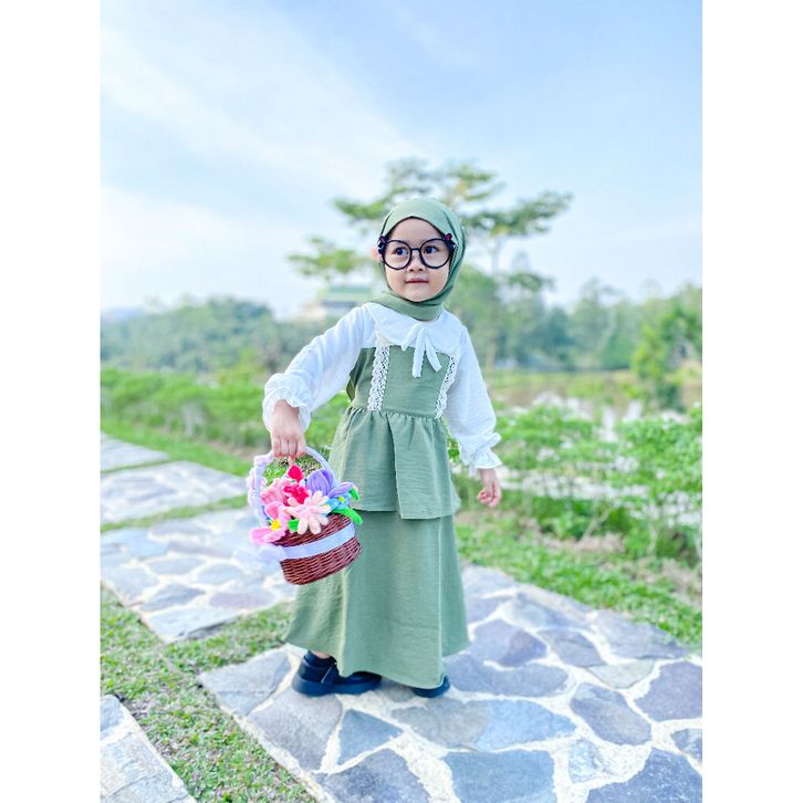 1 - 3 Tahun Kesya Series Setelan Gamis Muslim Anak Perempuan Set Hijab Bahan Crinkle Model Korea Terbaru 2022