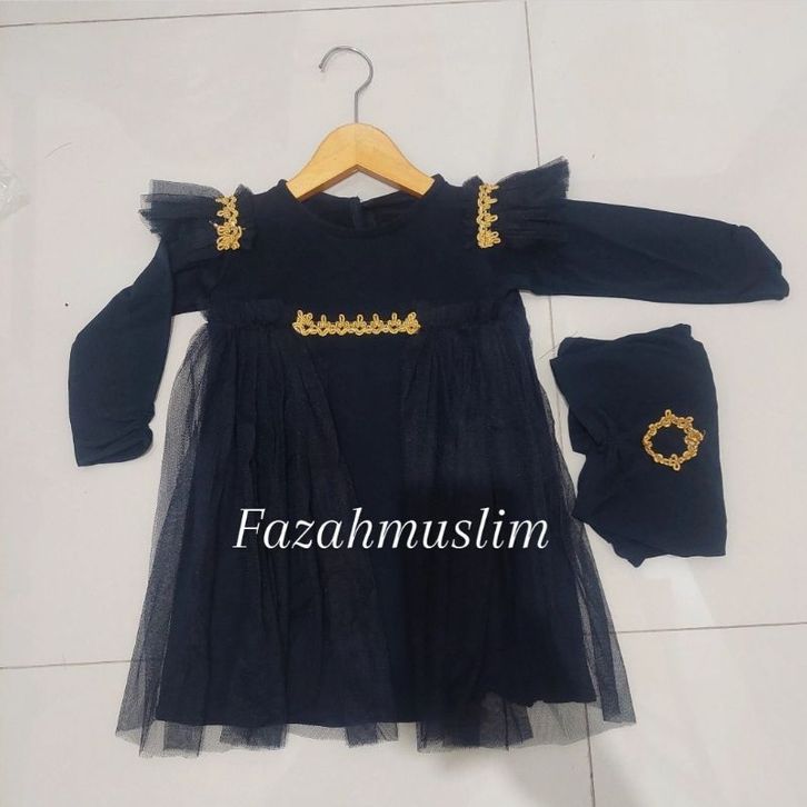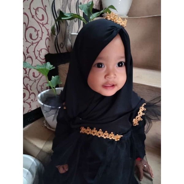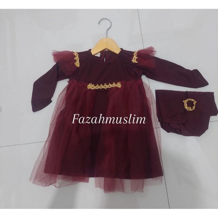 Gamis anak bayi, gamis tille set hijab bayi, baju muslim aqiqah renda bayi. gamis princess bayi