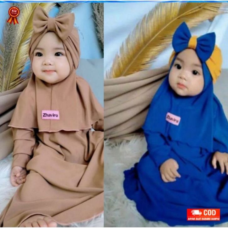 Gamis Balita 0 1 2 3 4 5 6 7 8 9 10 Bulan 1 2 3 4 5 6 Tahun Set Hijab Bahan Jersey fashion Musliim
