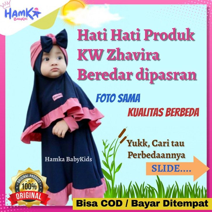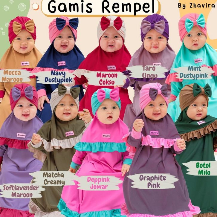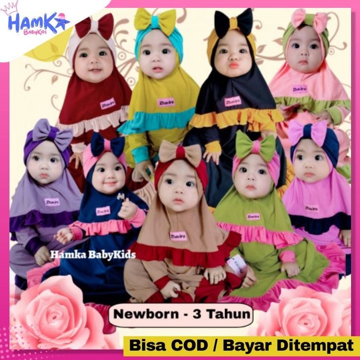 Gamis Bayi Anak Perempuan 0 - 3 Tahun Zhavira Set Hijab Bahan Jersey Newborn 1 2 Tahun