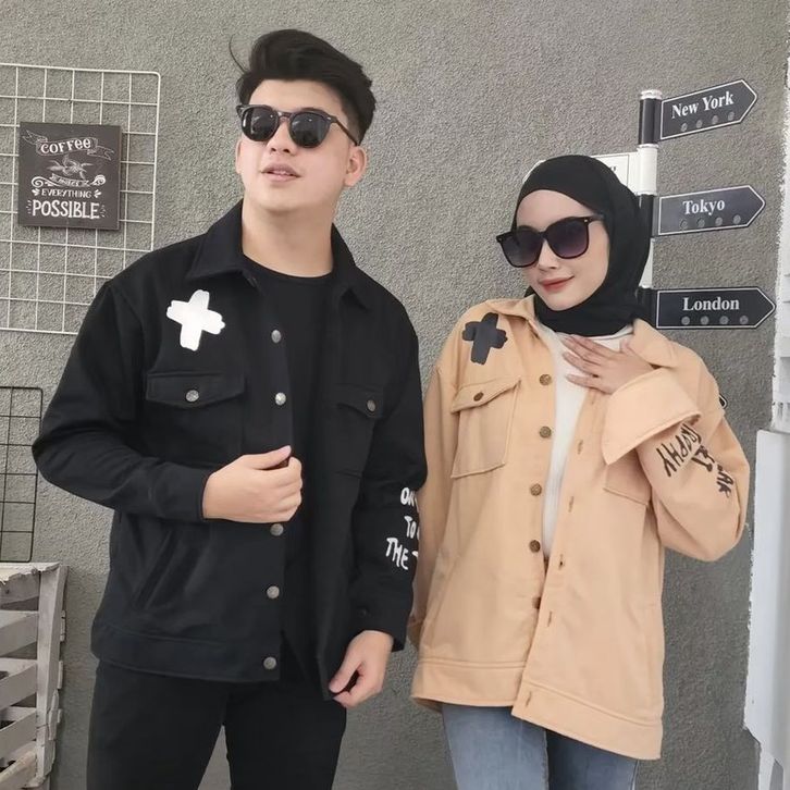 Jaket Pasangan Cowo Cewe Jacket Semi Parka Sweater Outther Kapelan Pacar Kemeja Pria Wanita Isi 2 Pcs