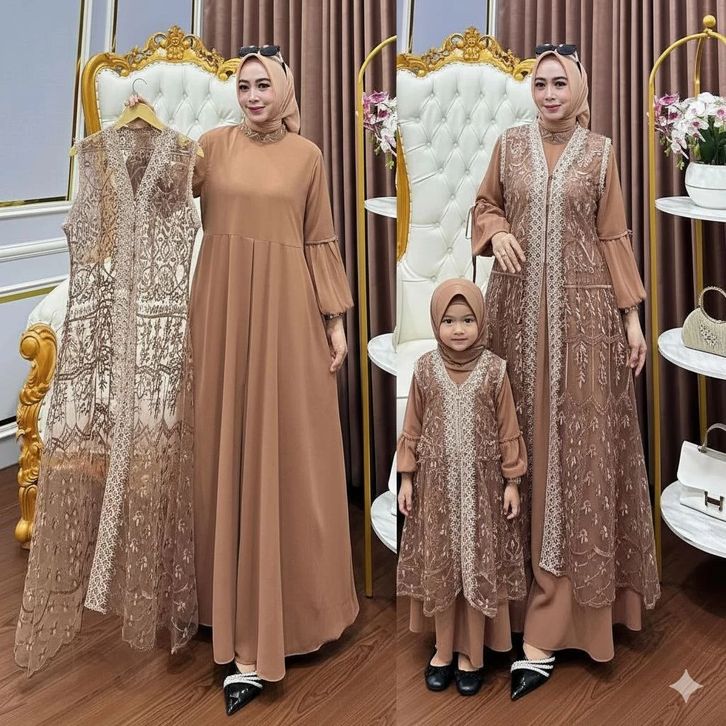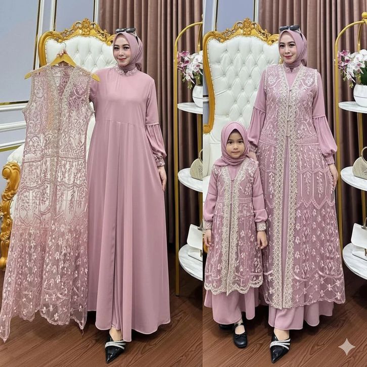 Gamis Lebaran 2026 Gamis Wanita Terbaru 2025 2026 Gamis Ceruty Mix Brukat Sarimbit Coupel Ibu Dan Anak Terbaru Jumbo